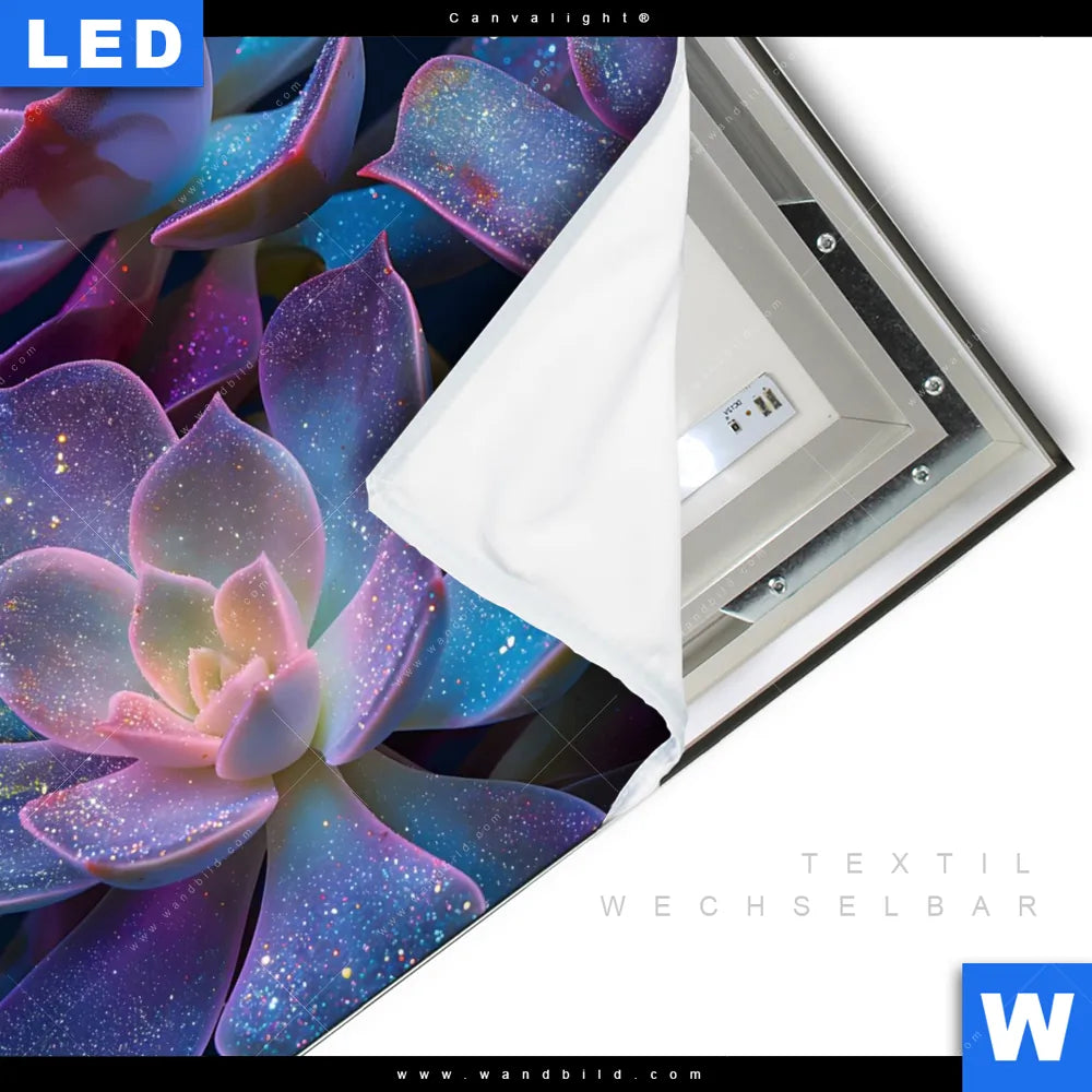 Canvalight® TEX Leuchtbild | Neon Sukkulenten | Quadrat