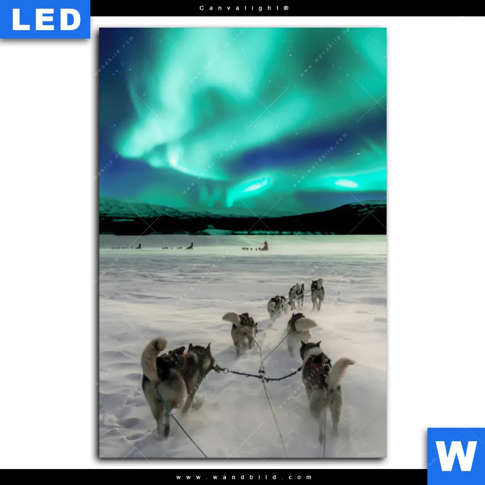 Canvalight® Leuchtbild | Nordlichter und Schlittenhunde | Hochformat