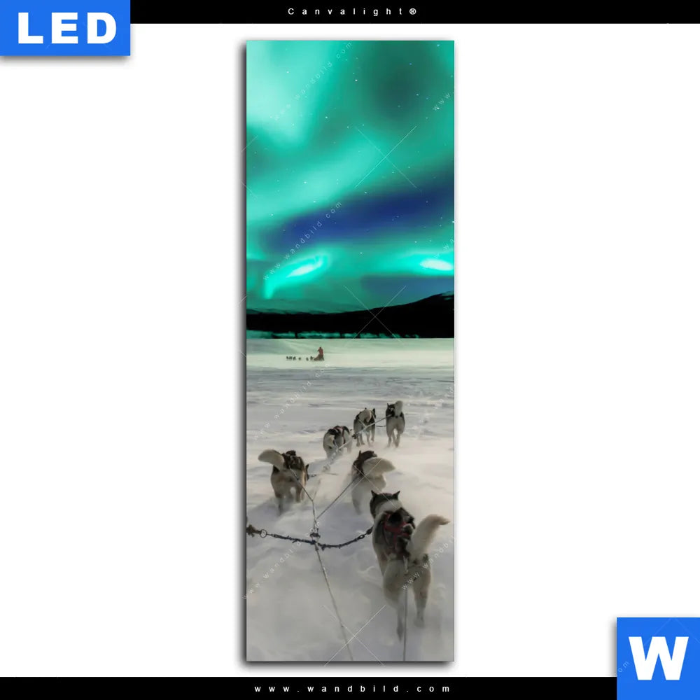 Canvalight® Leuchtbild | Nordlichter und Schlittenhunde | Schmal