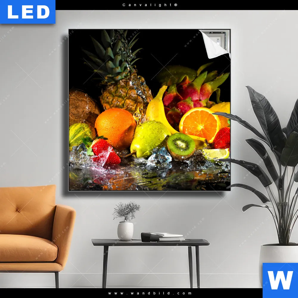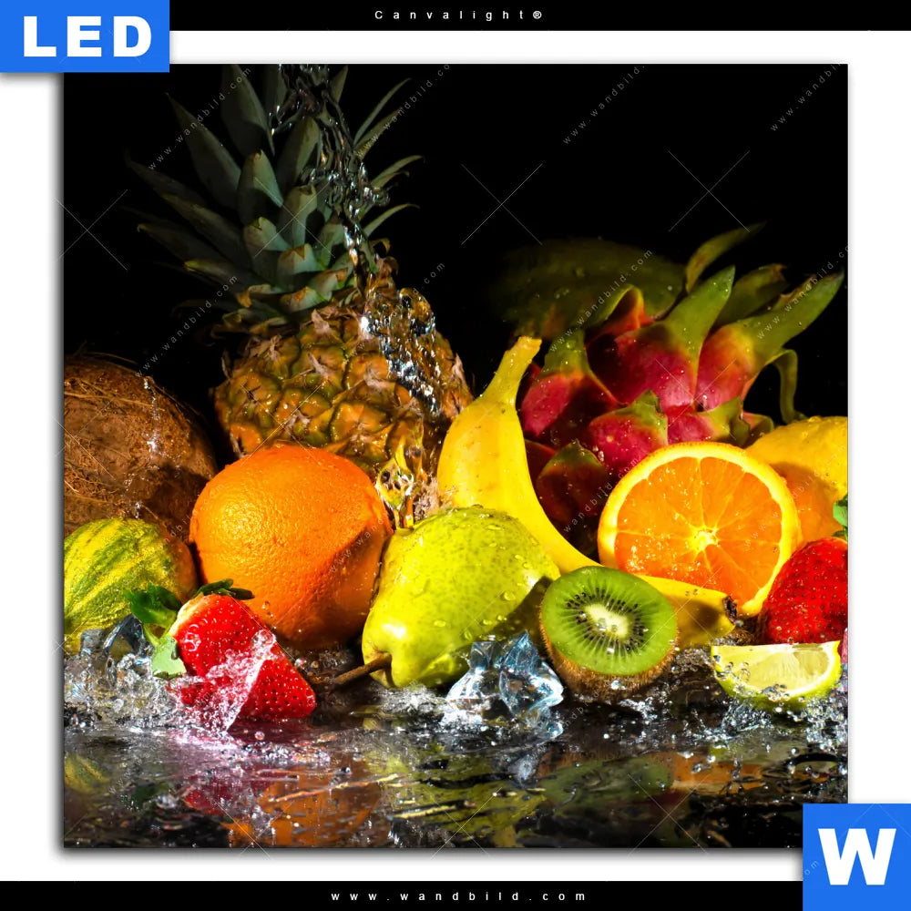 Canvalight® TEX Leuchtbild | Obst-in spritzendem Wasser | Quadrat