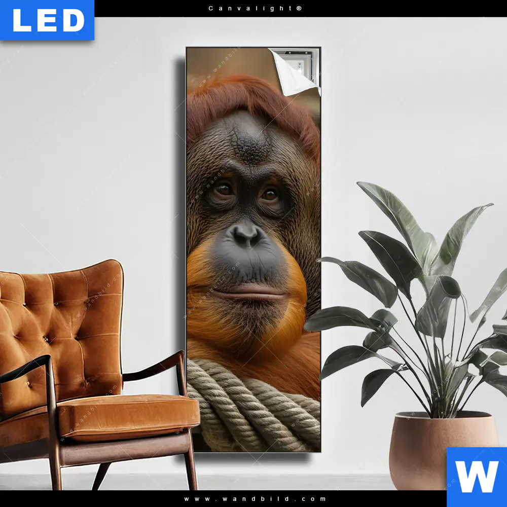 Canvalight® TEX Leuchtbild | Orang-Utan mit sanftem Blick | Schmal