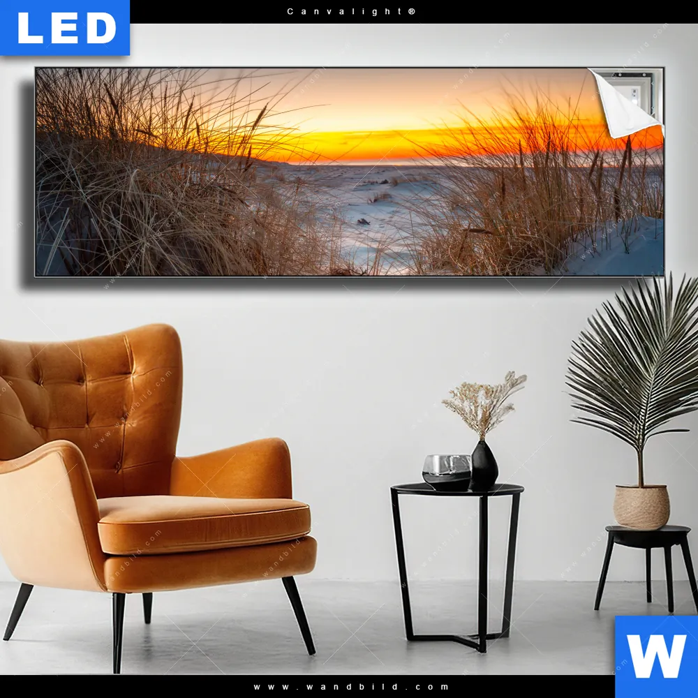 Canvalight® TEX Leuchtbild | Ostseestrand bei Sonnenuntergang | Panorama