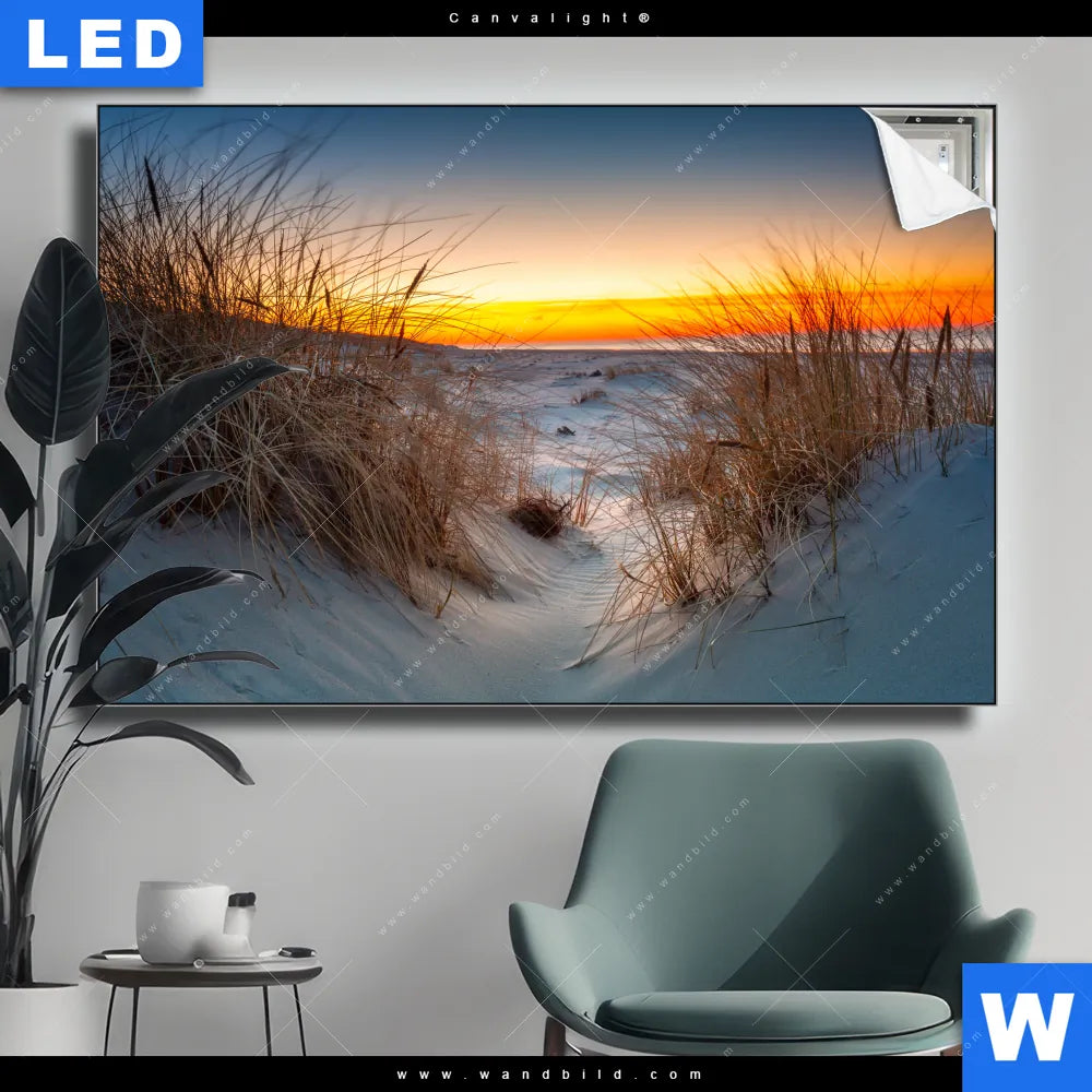 Canvalight® Leuchtbild | Ostseestrand bei Sonnenuntergang | Querformat