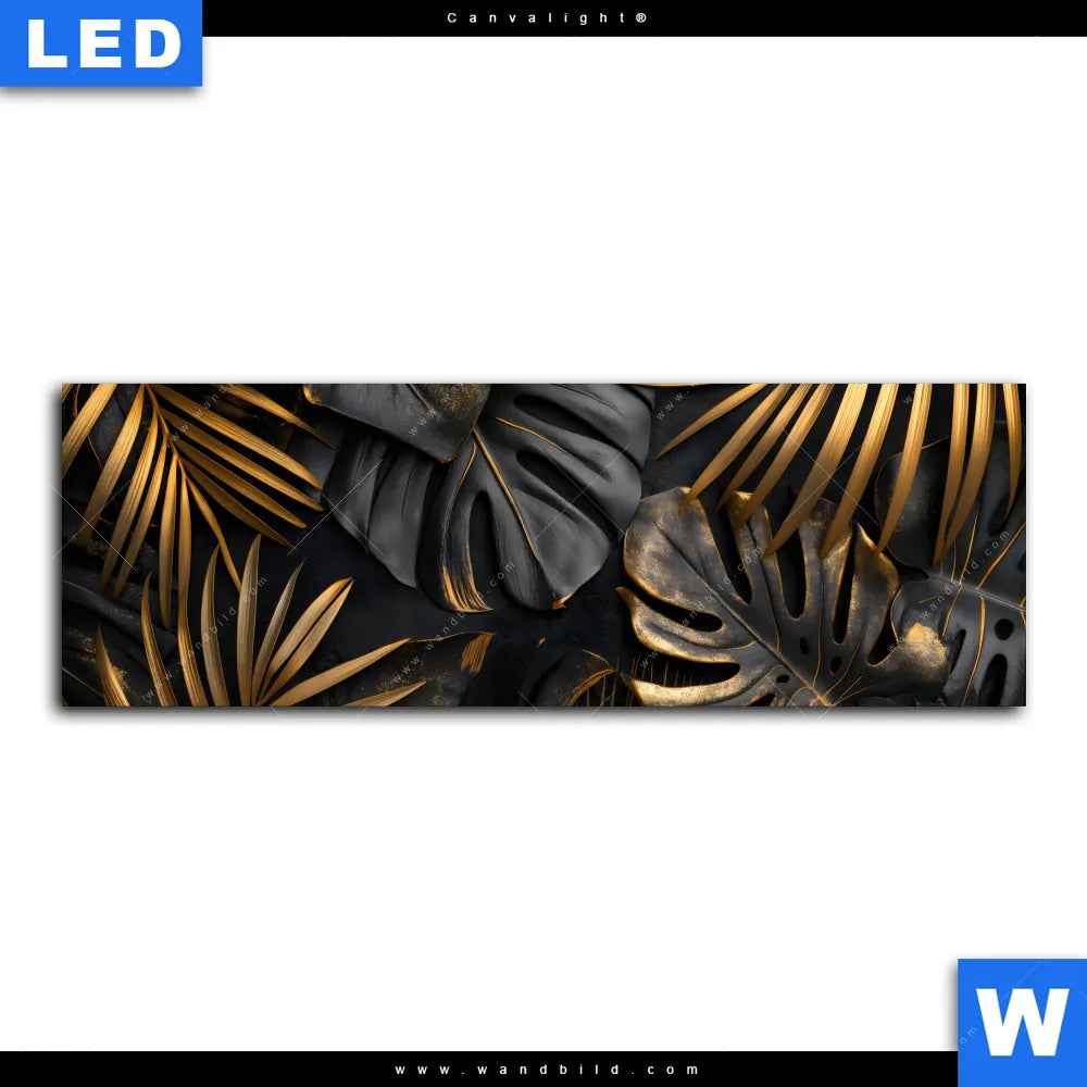 Canvalight® Leuchtbild | Palmenblätter Schwarz Gold | Panorama