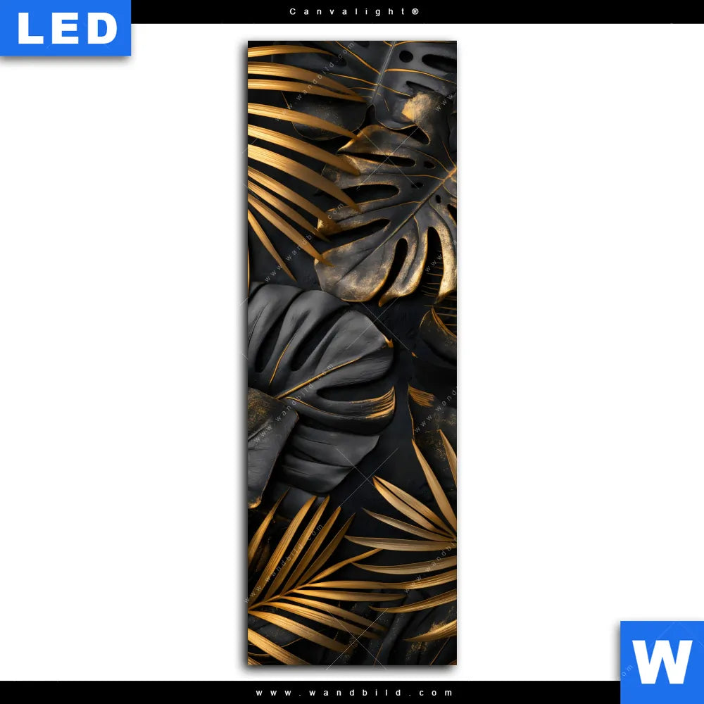 Canvalight® Leuchtbild | Palmenblätter Schwarz Gold | Schmal