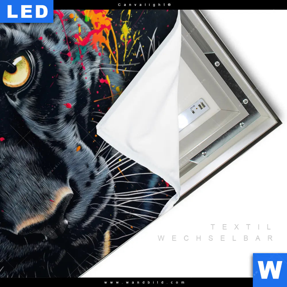 Canvalight® TEX Leuchtbild | Panther Farbexplosion | Querformat