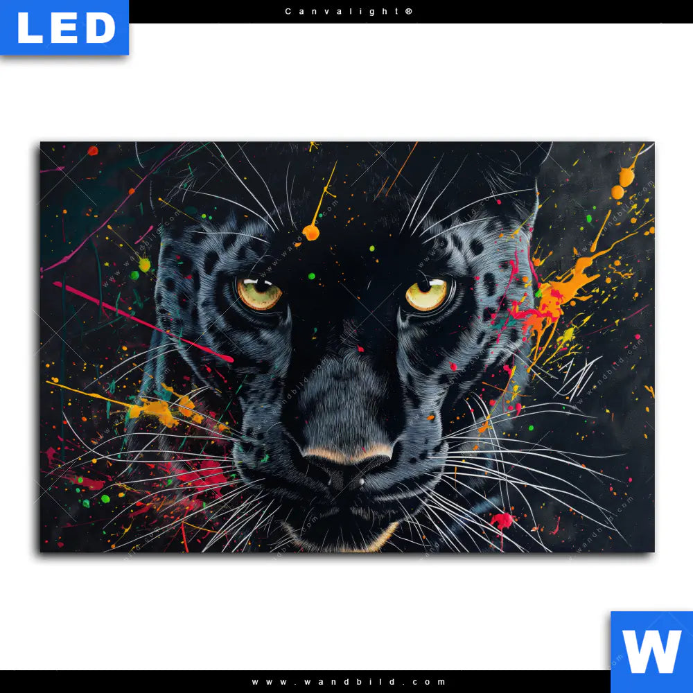 Canvalight® Leuchtbild | Panther Farbexplosion | Querformat