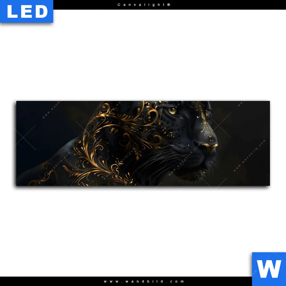 Canvalight® Leuchtbild | Panther mit goldenen Ornamenten | Panorama