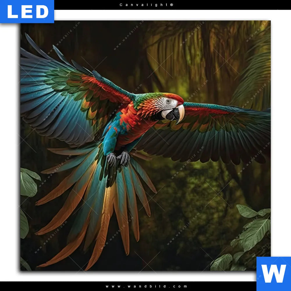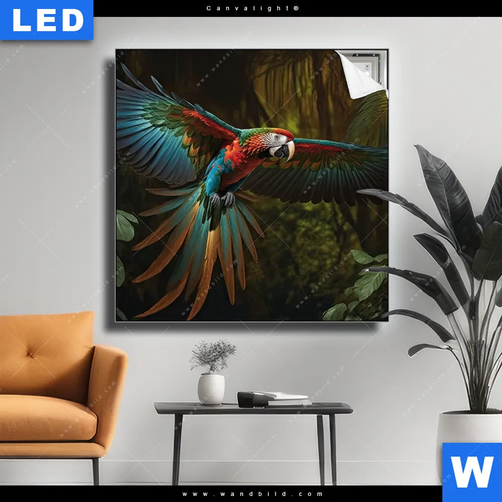 Canvalight® Leuchtbild | Papagei im Flug | Quadrat
