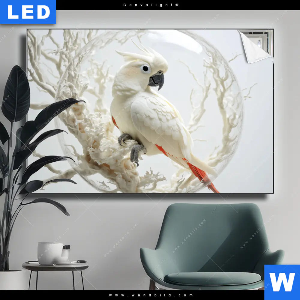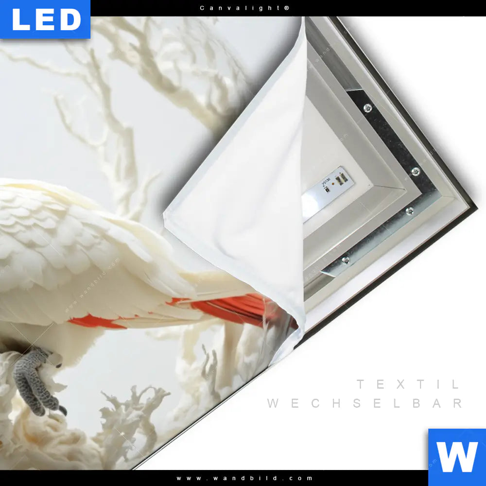 Canvalight® TEX Leuchtbild | Papagei - Zarte Gefangenschaft | Querformat