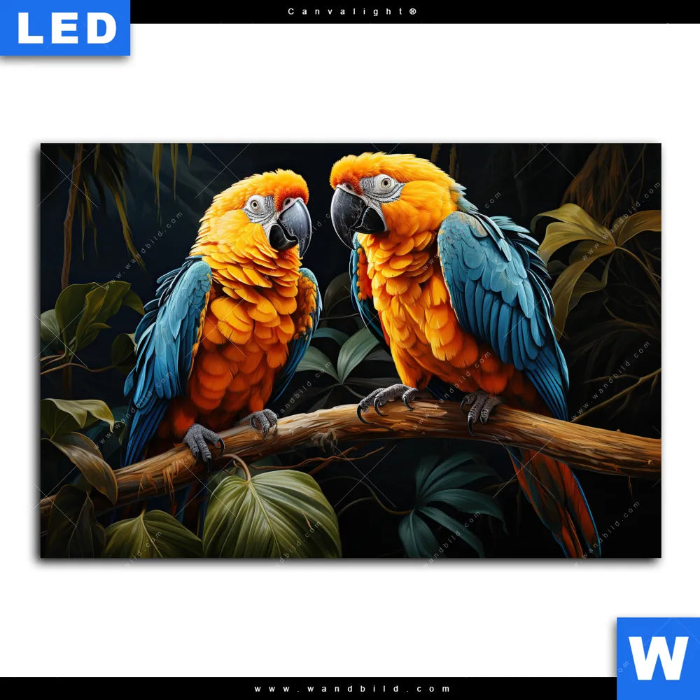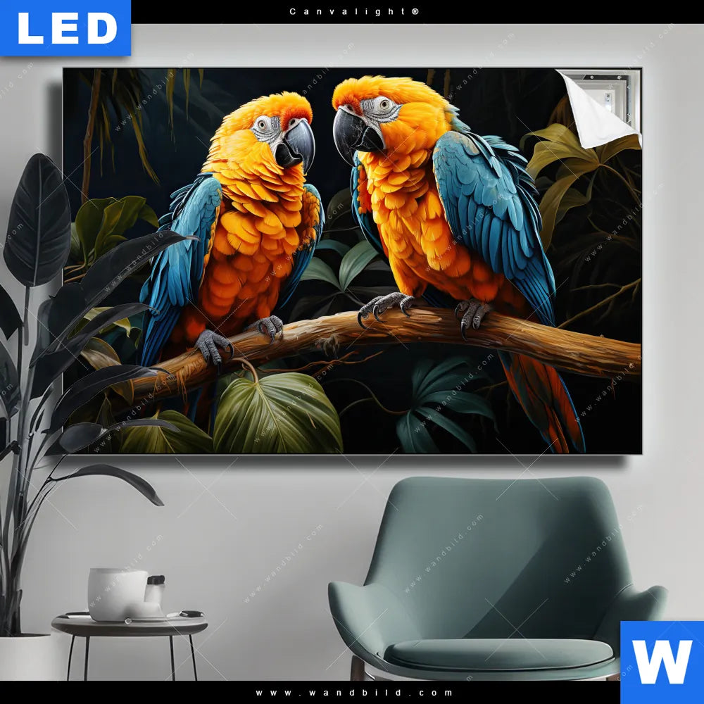 Canvalight® Leuchtbild | Papageien auf einem Ast | Querformat