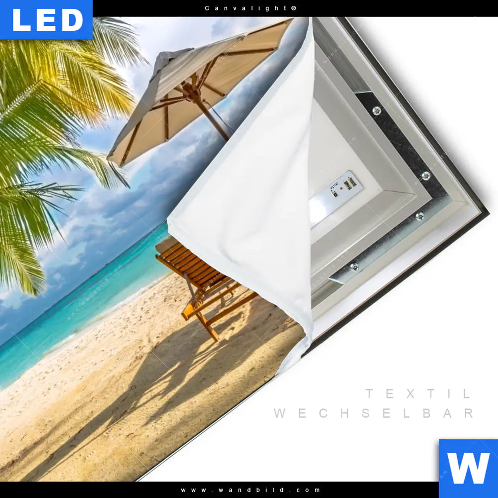 LED-Textilrahmen-Bild mit austauschbarem Strand - Meer, Landschaften Textil-Druck (Wechselbild)