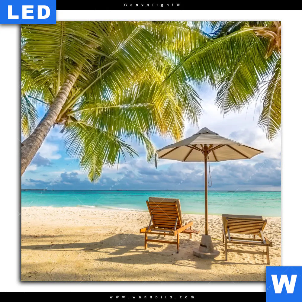 Canvalight® TEX Leuchtbild | Paradies unter Palmen | Quadrat
