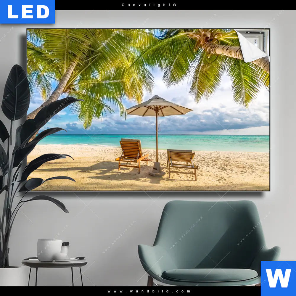Canvalight® TEX Leuchtbild | Paradies unter Palmen | Querformat
