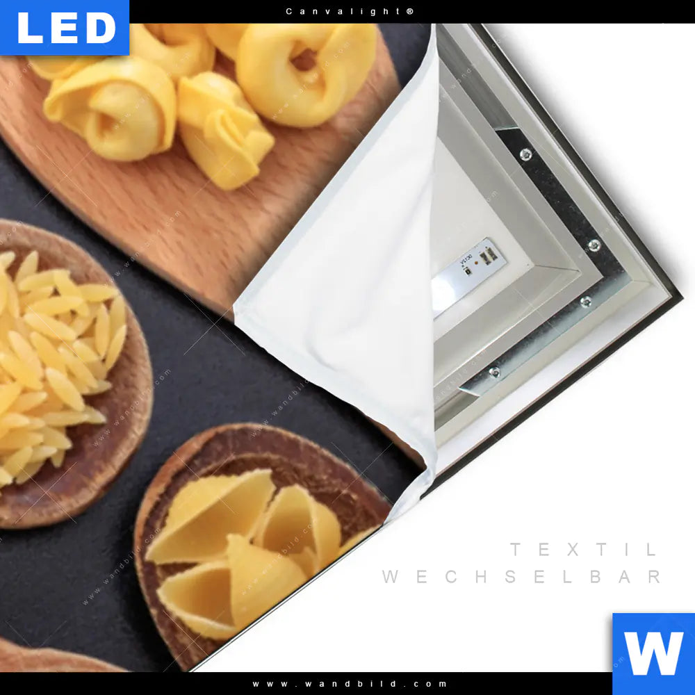 LED-Textilrahmen-Bild mit austauschbarem Essen - Trinken Textil-Druck (Wechselbild)