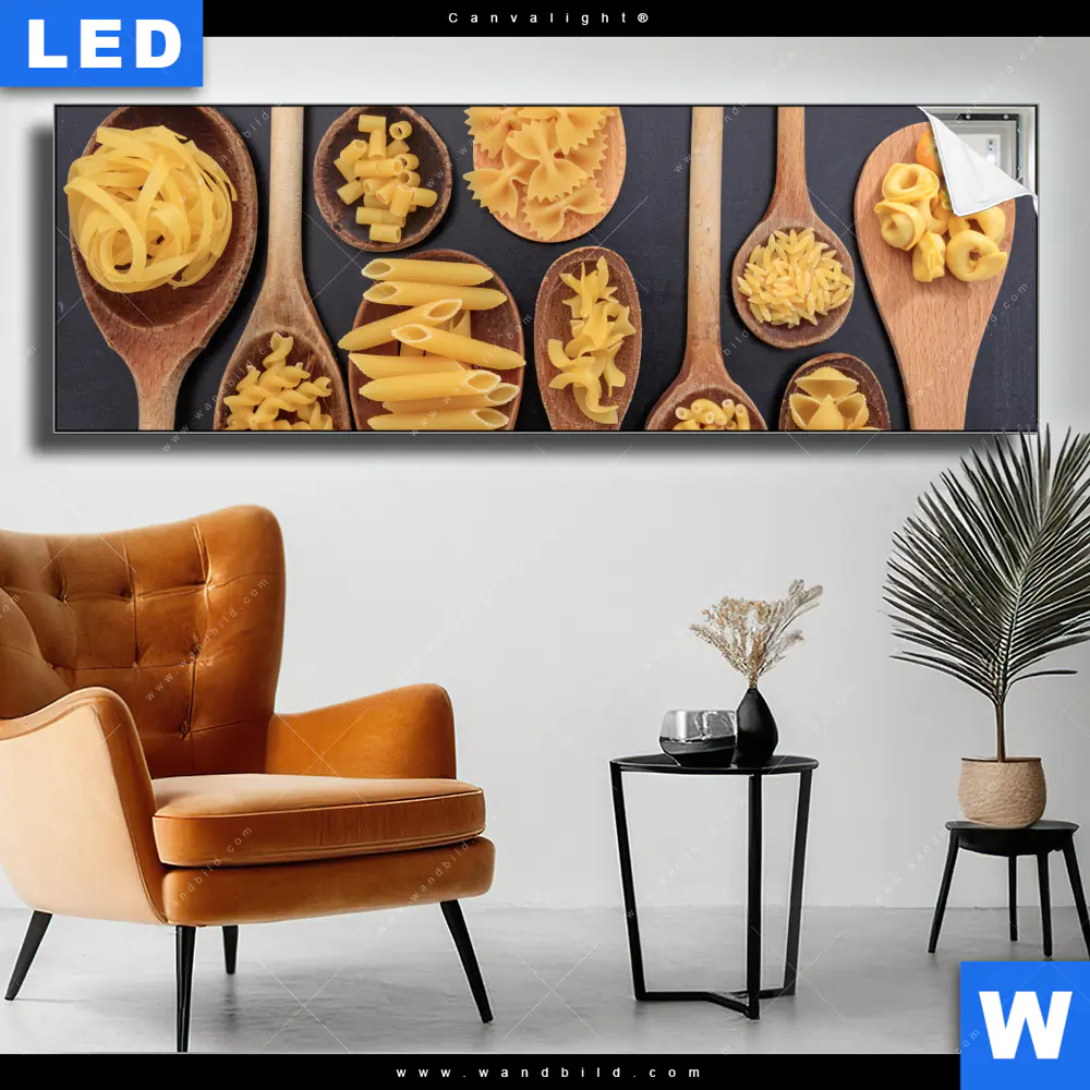 Canvalight® Leuchtbild | Pasta auf Löffeln | Panorama