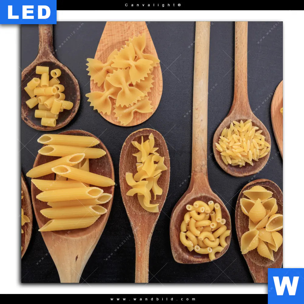 Canvalight® Leuchtbild | Pasta auf Löffeln | Quadrat