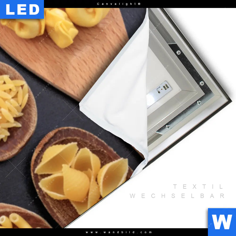 LED-Textilrahmen-Bild mit austauschbarem Essen - Trinken Textil-Druck (Wechselbild)
