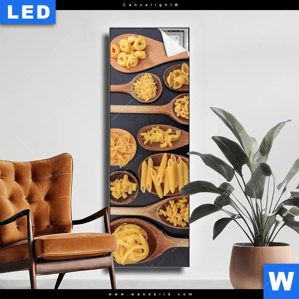 Canvalight® Leuchtbild | Pasta auf Löffeln | Schmal