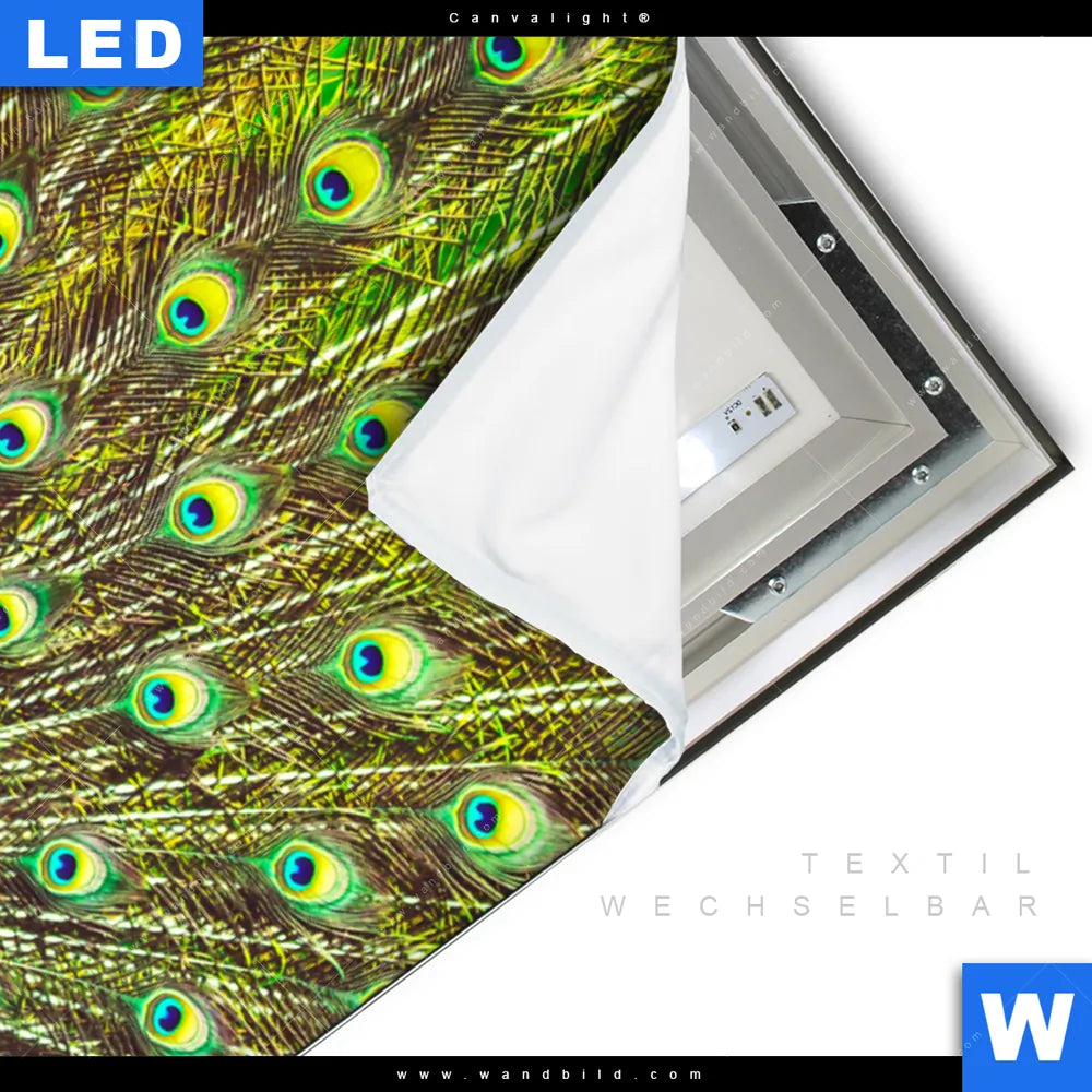 Canvalight® TEX Leuchtbild | Pfauenschwanz | Hochformat