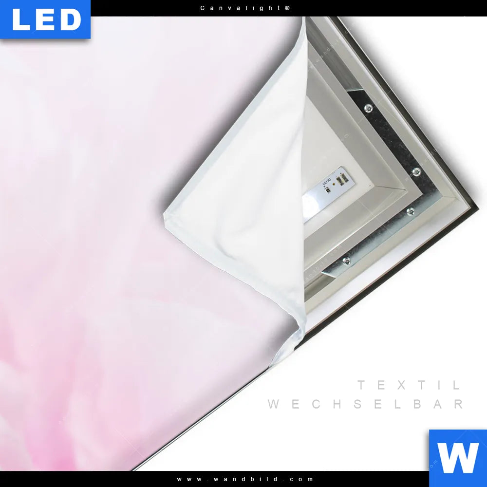 LED-Textilrahmen-Bild mit austauschbarem Blumen - Botanik Textil-Druck (Wechselbild)