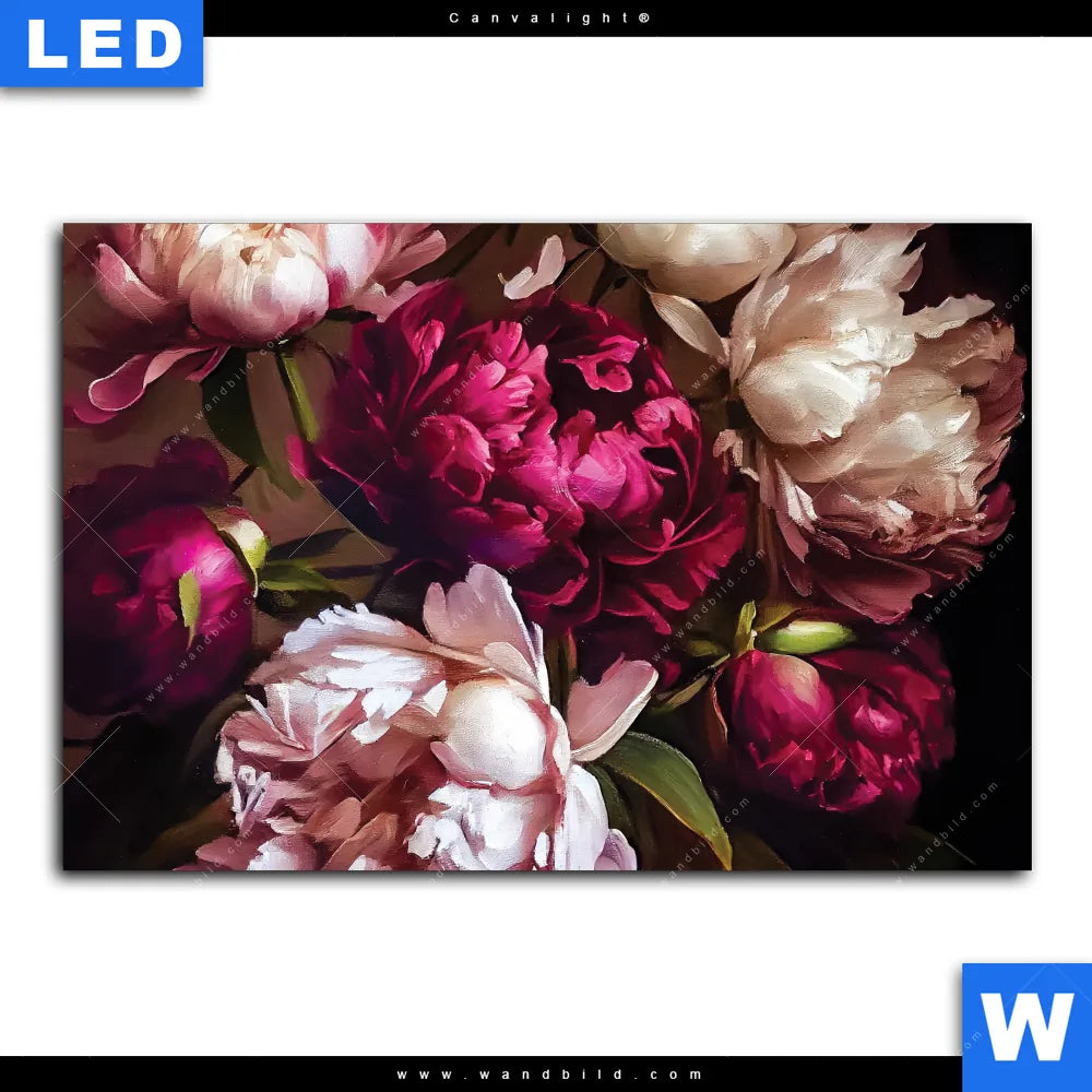 Canvalight® Leuchtbild | Pfingstrosen im Barockstil | Querformat