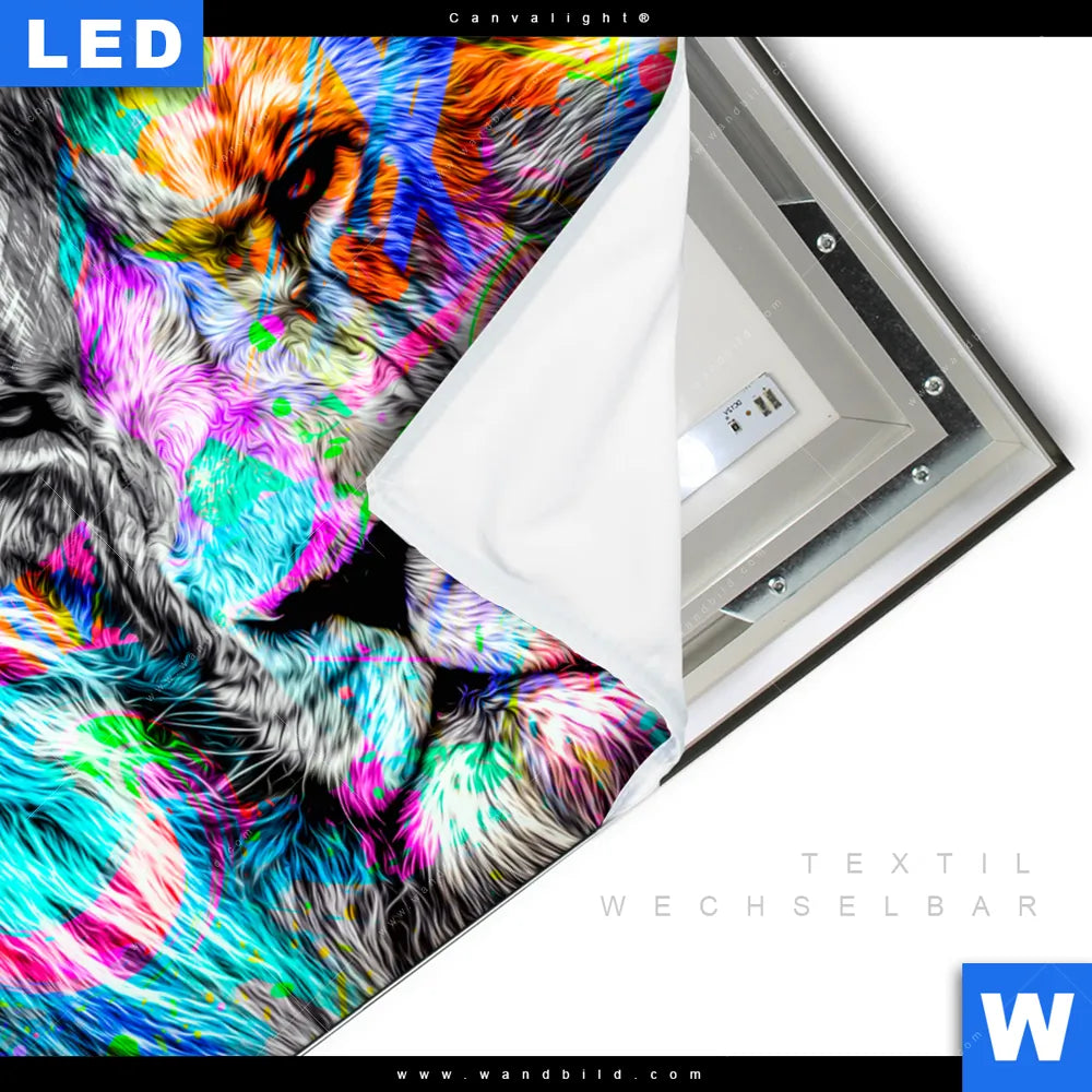 Canvalight® TEX Leuchtbild | Pop Art Löwe No.1 | Quadrat