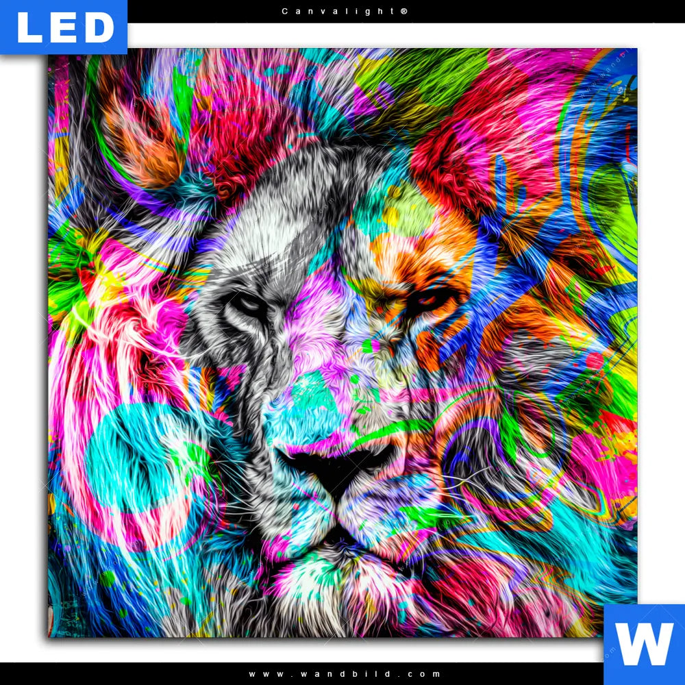 Canvalight® Leuchtbild | Pop Art Löwe No.1 | Quadrat