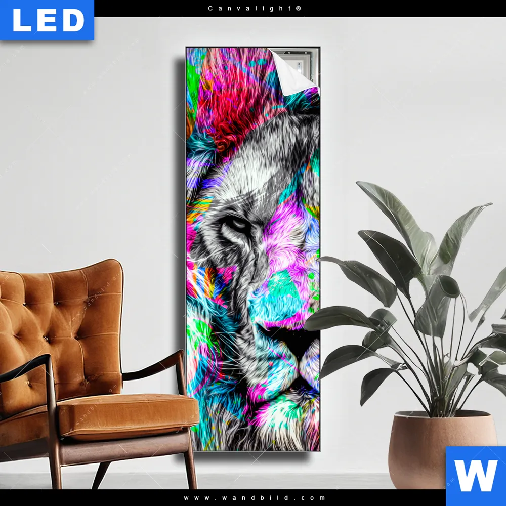 Canvalight® Leuchtbild | Pop Art Löwe No.1 | Schmal