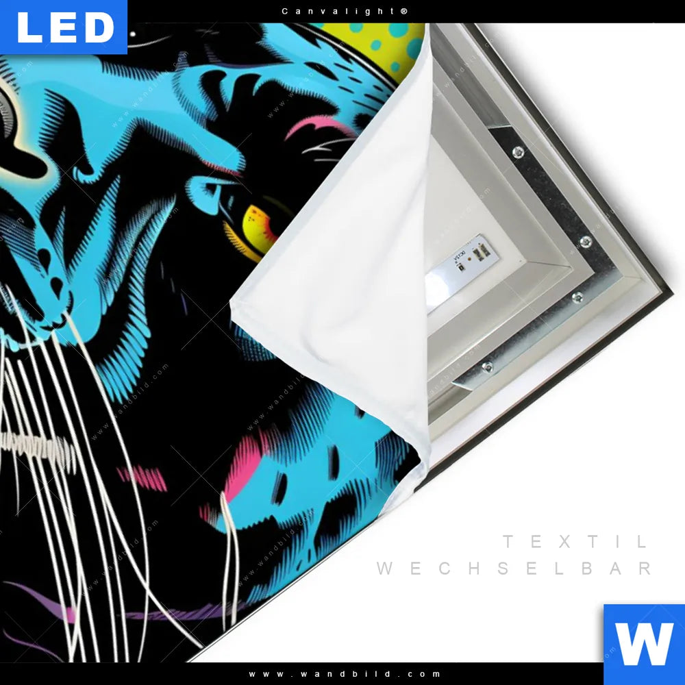 Canvalight® TEX Leuchtbild | Pop Art Panther | Hochformat