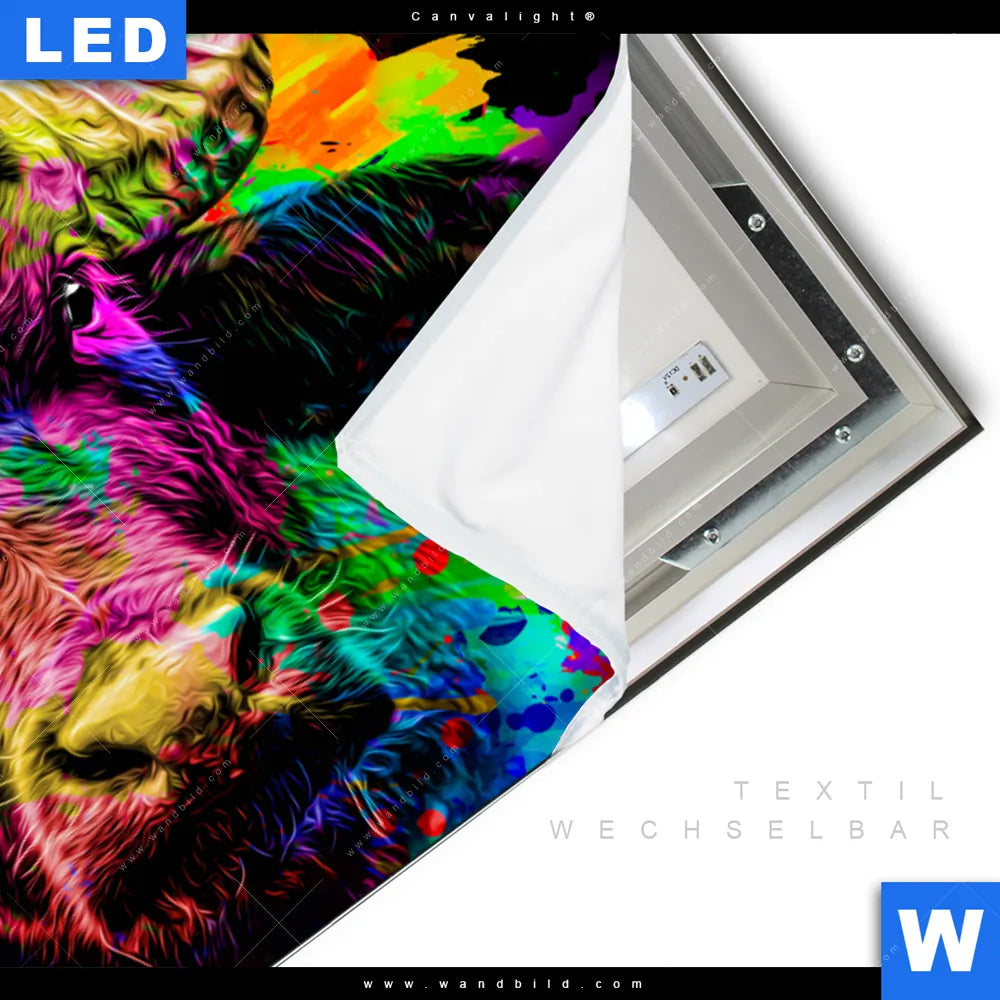 Canvalight® TEX Leuchtbild | Pop Art Stier | Querformat