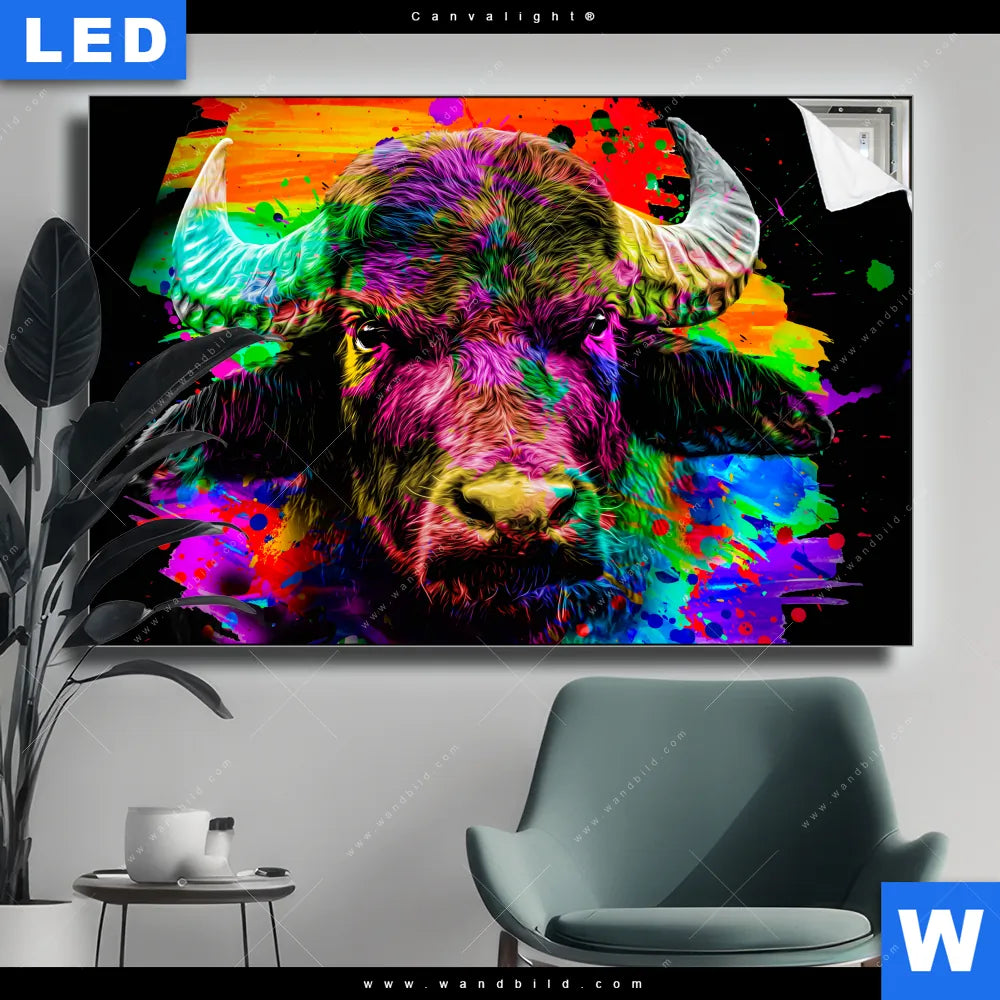 Canvalight® Leuchtbild | Pop Art Stier | Querformat