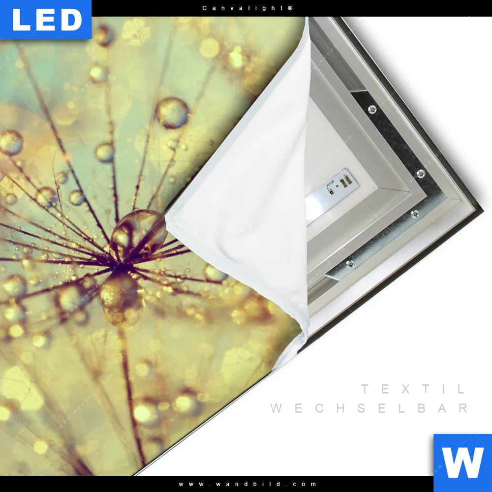 Canvalight® TEX Leuchtbild | Pusteblume bei Sonnenuntergang | Quadrat