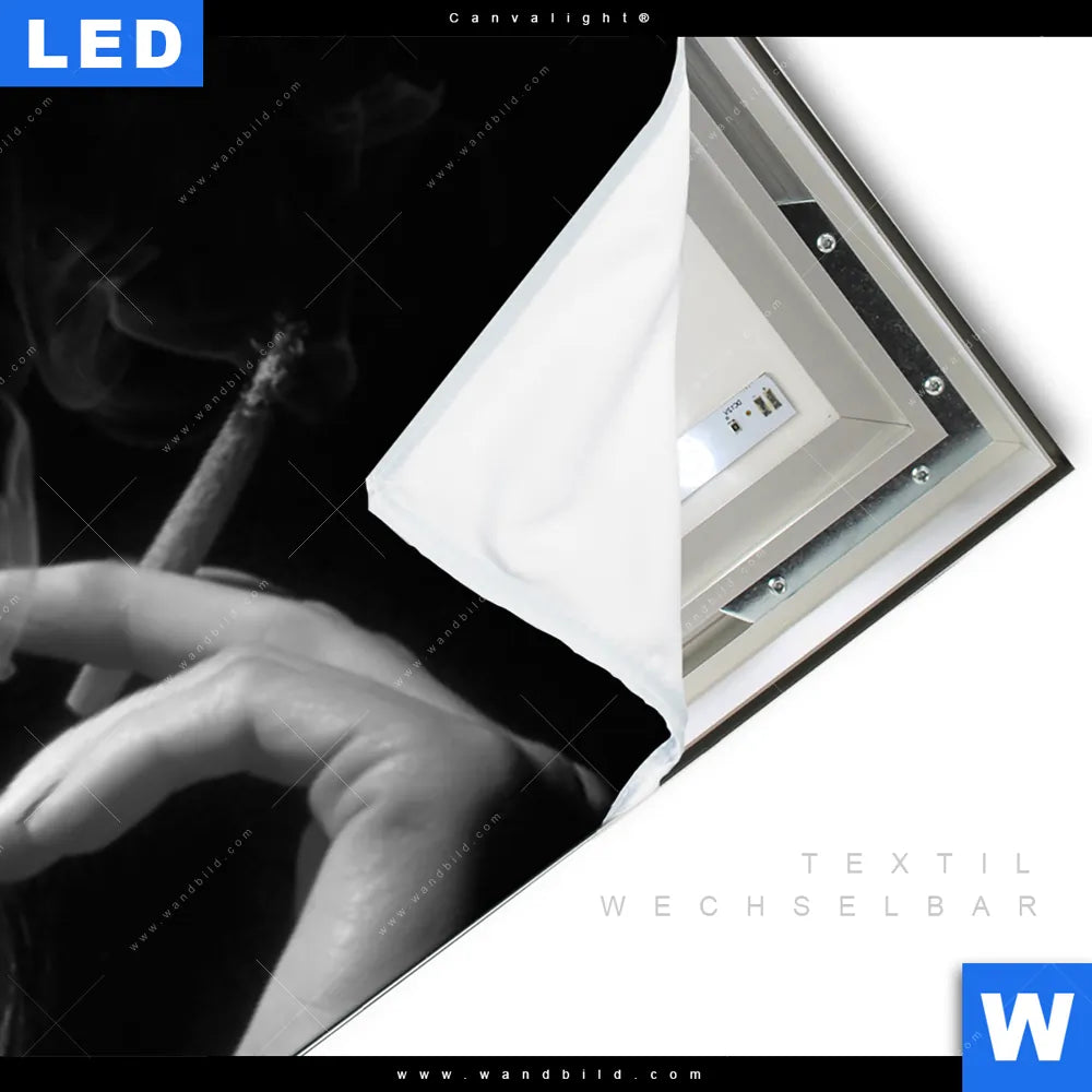 Canvalight® TEX Leuchtbild | Rauchende Lady | Panorama