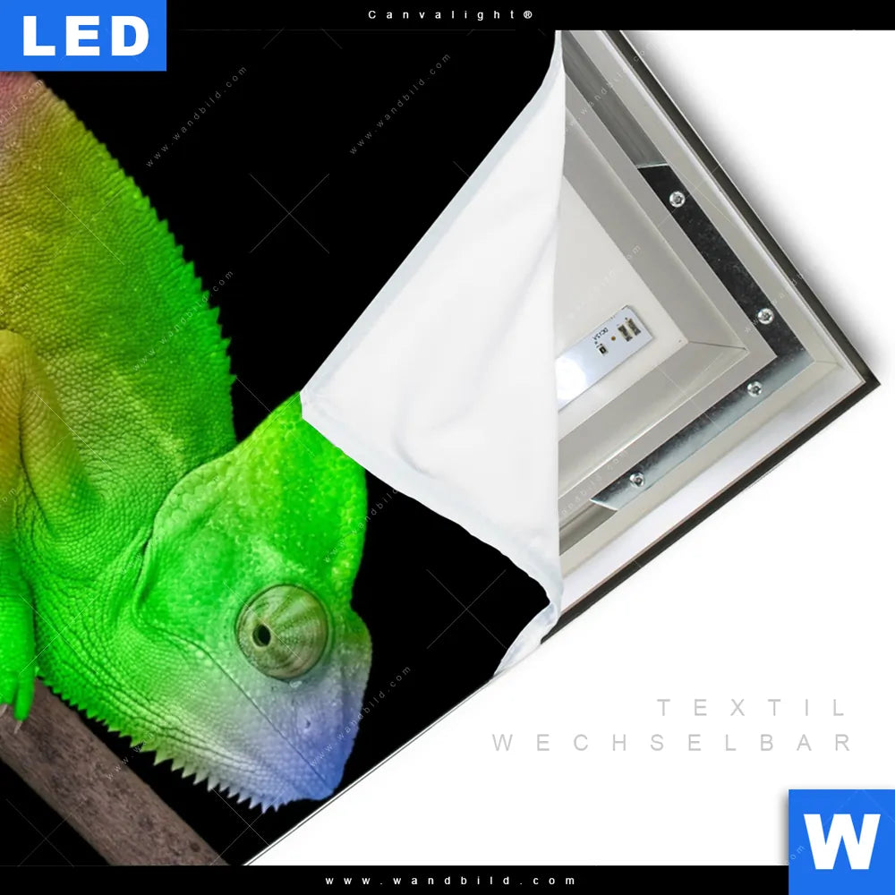 Canvalight® TEX Leuchtbild | Regenbogen Chamäleon | Hochformat