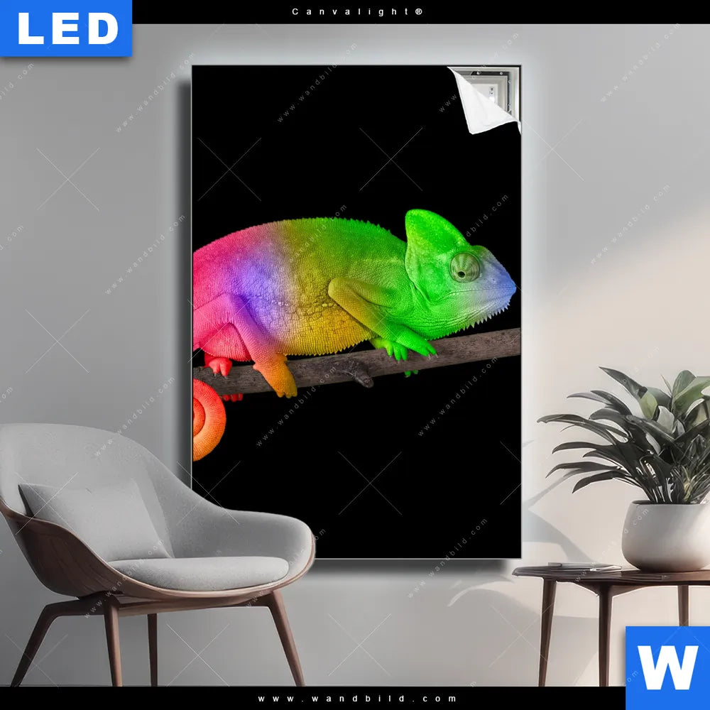 Canvalight® Leuchtbild | Regenbogen Chamäleon | Hochformat