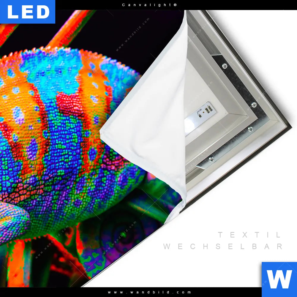 Canvalight® TEX Leuchtbild | Regenbogen Chamäleon No.2 | Querformat