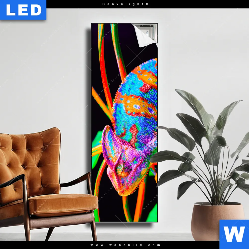 Canvalight® Leuchtbild | Regenbogen Chamäleon No.2 | Schmal