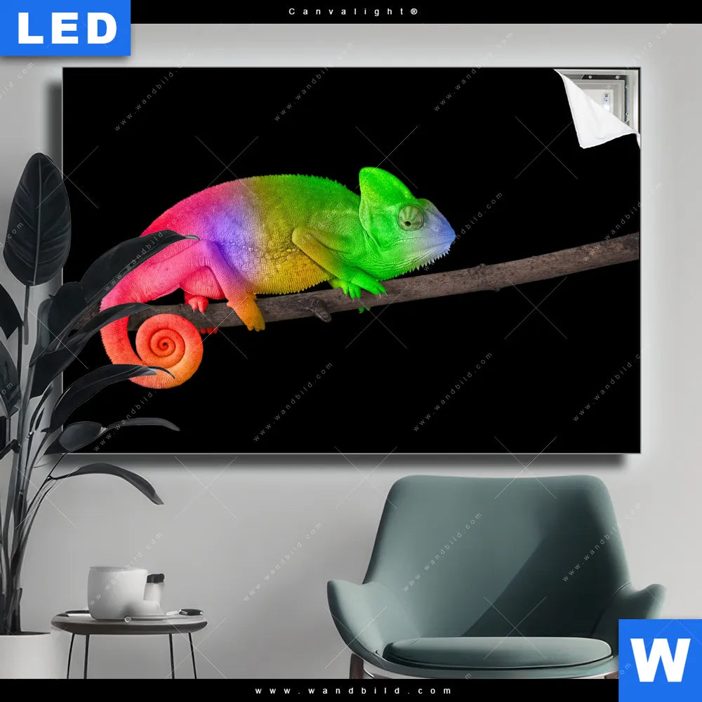 Canvalight® Leuchtbild | Regenbogen Chamäleon | Querformat