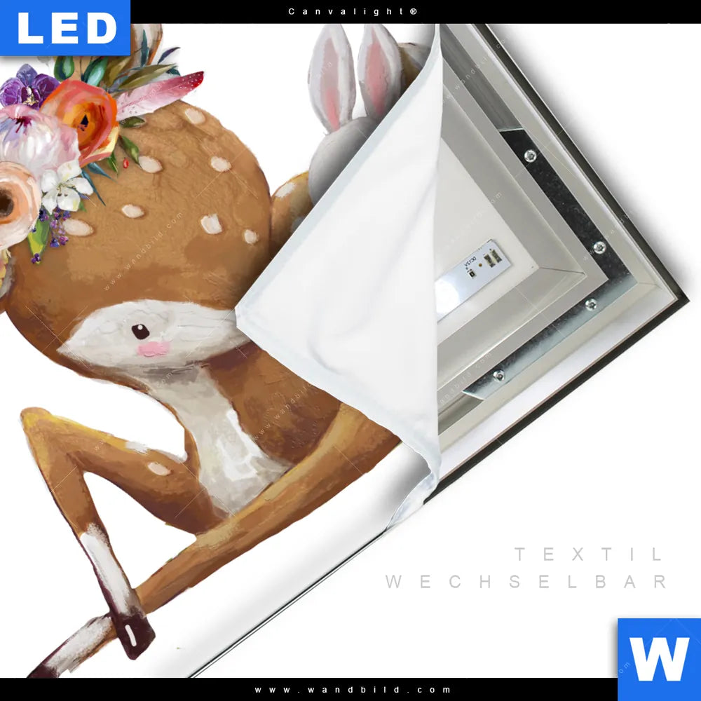 Canvalight® TEX Leuchtbild | Reh & Häschen | Quadrat