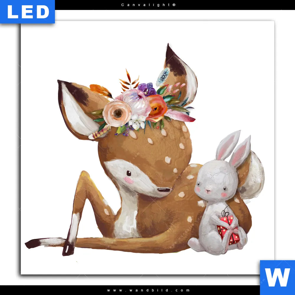 Canvalight® Leuchtbild | Reh & Häschen | Quadrat