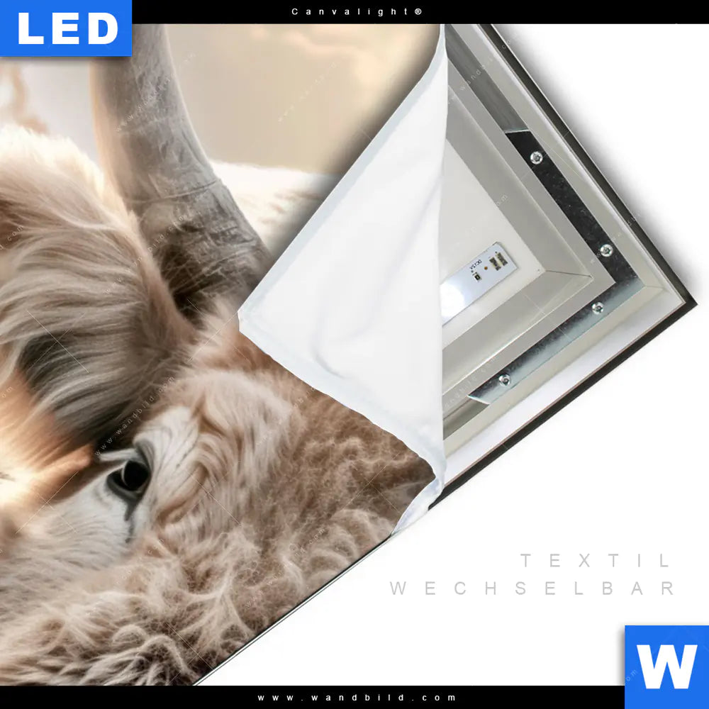 Canvalight® TEX Leuchtbild | Rind - Kraft der Stille | Hochformat