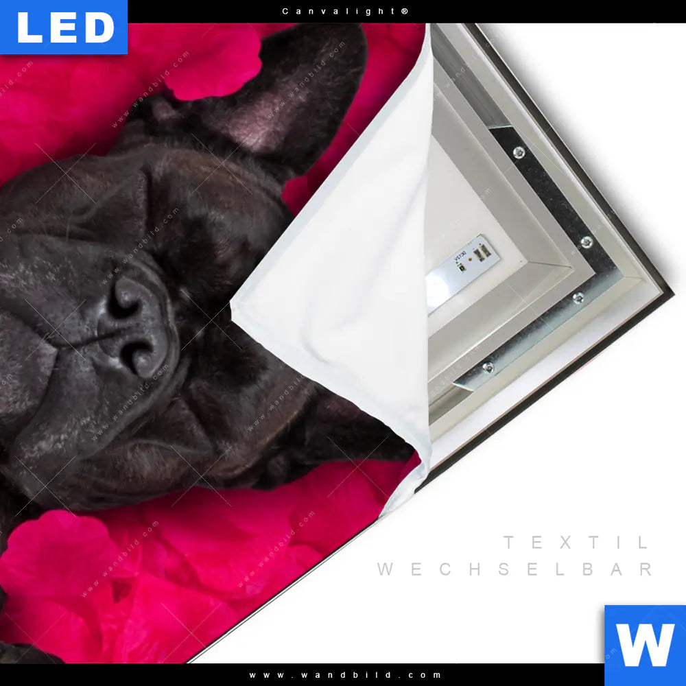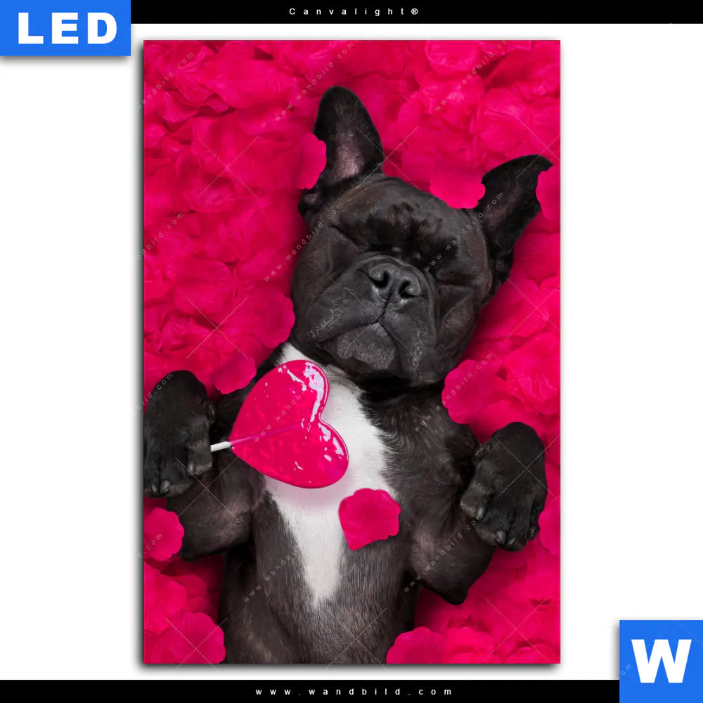 Canvalight® TEX Leuchtbild | Romantik mit süßen Hunden | Hochformat