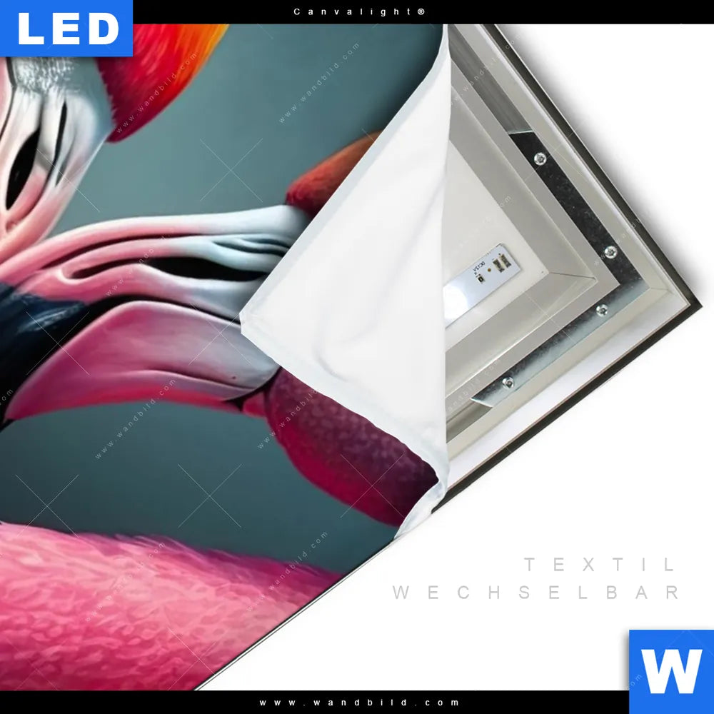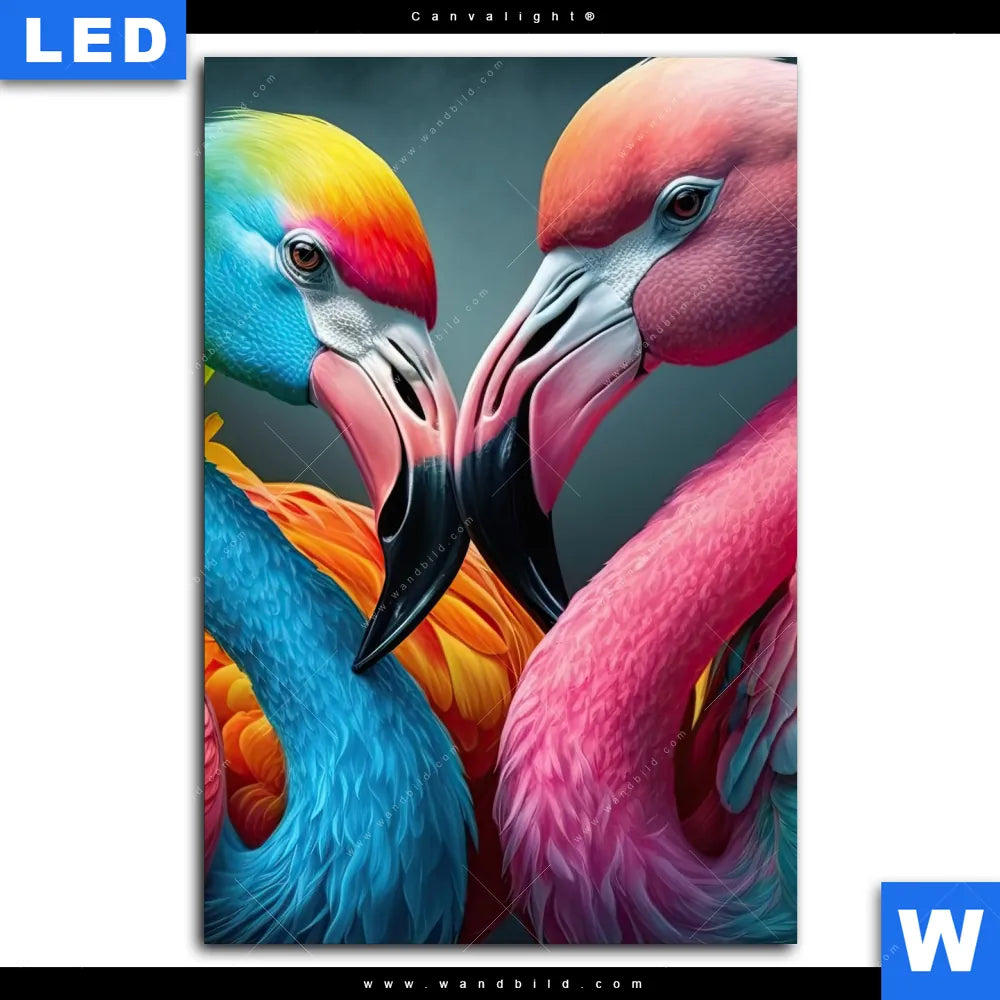 Canvalight® TEX Leuchtbild | Romantische Flamingos | Hochformat