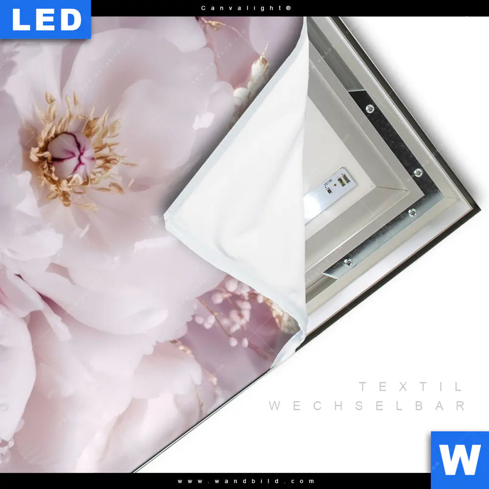 Canvalight® TEX Leuchtbild | Romantische Pfingstrosen | Hochformat