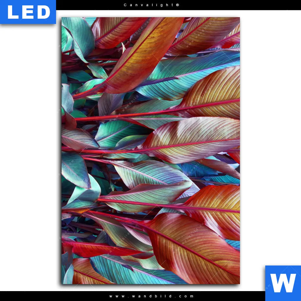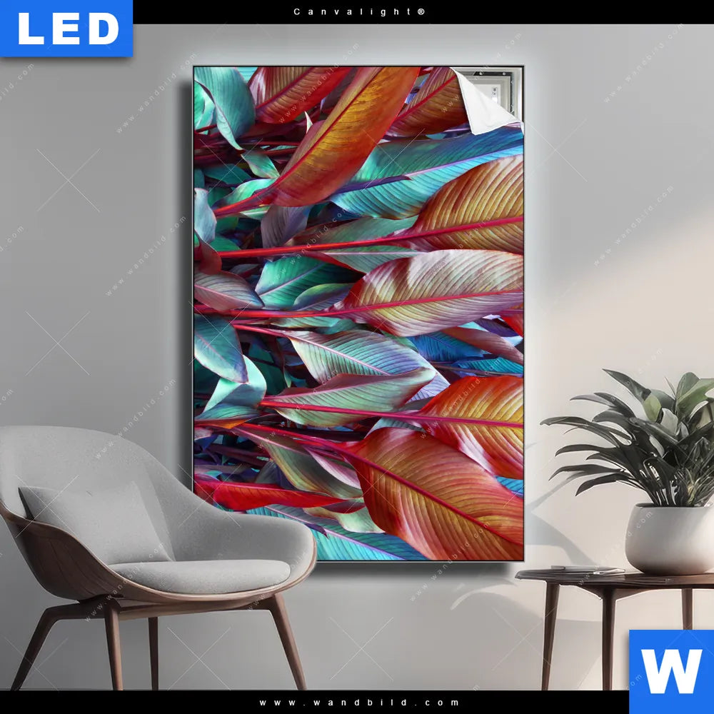 Canvalight® TEX Leuchtbild | Rote und smaragdgrüne Blätter | Hochformat