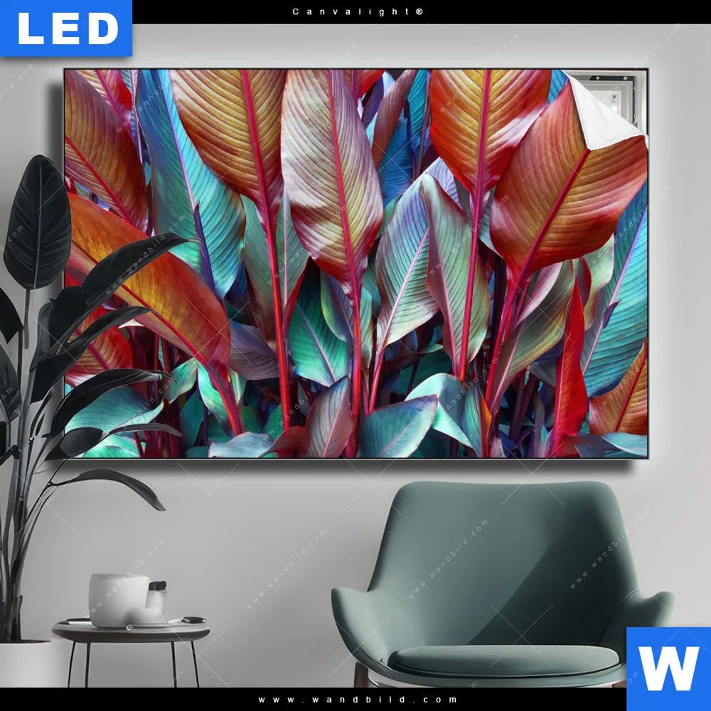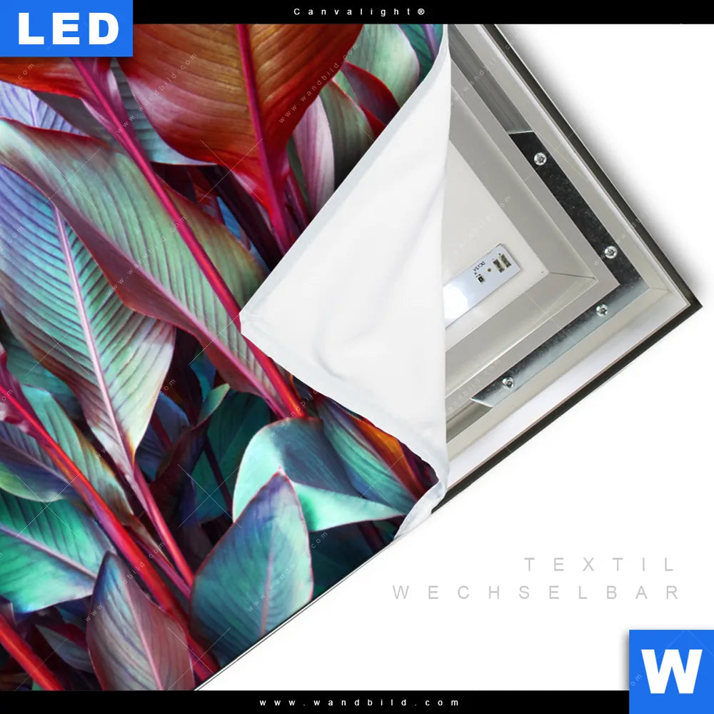 Canvalight® TEX Leuchtbild | Rote und smaragdgrüne Blätter | Querformat