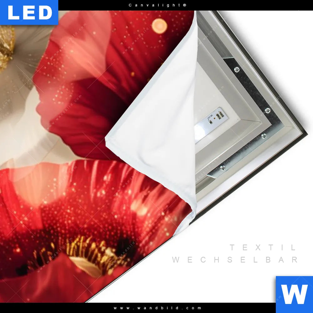 Canvalight® TEX Leuchtbild | Rote und weiße Mohnblumen | Panorama