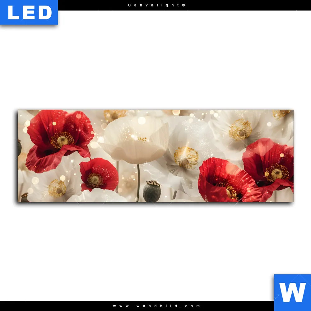 Canvalight® Leuchtbild | Rote und weiße Mohnblumen | Panorama