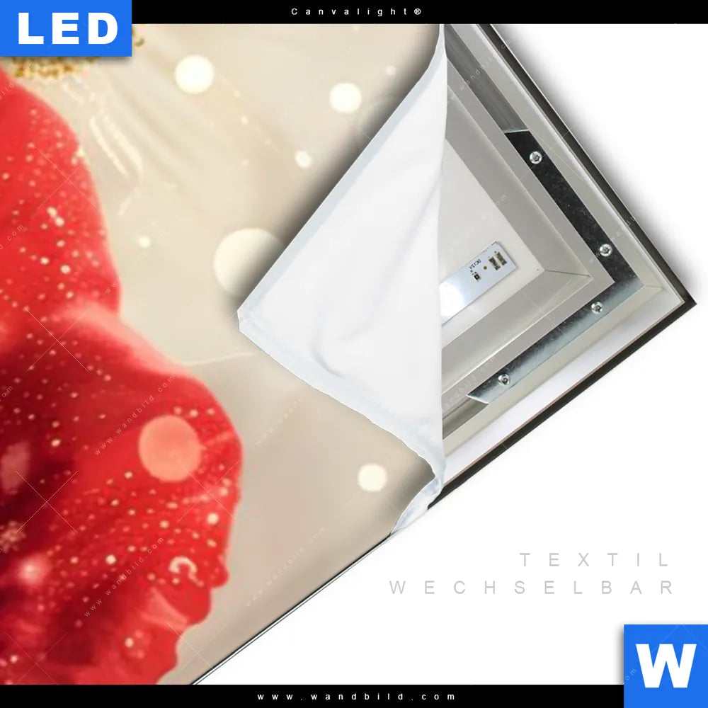 LED-Textilrahmen-Bild mit austauschbarem Blumen - Botanik Textil-Druck (Wechselbild)